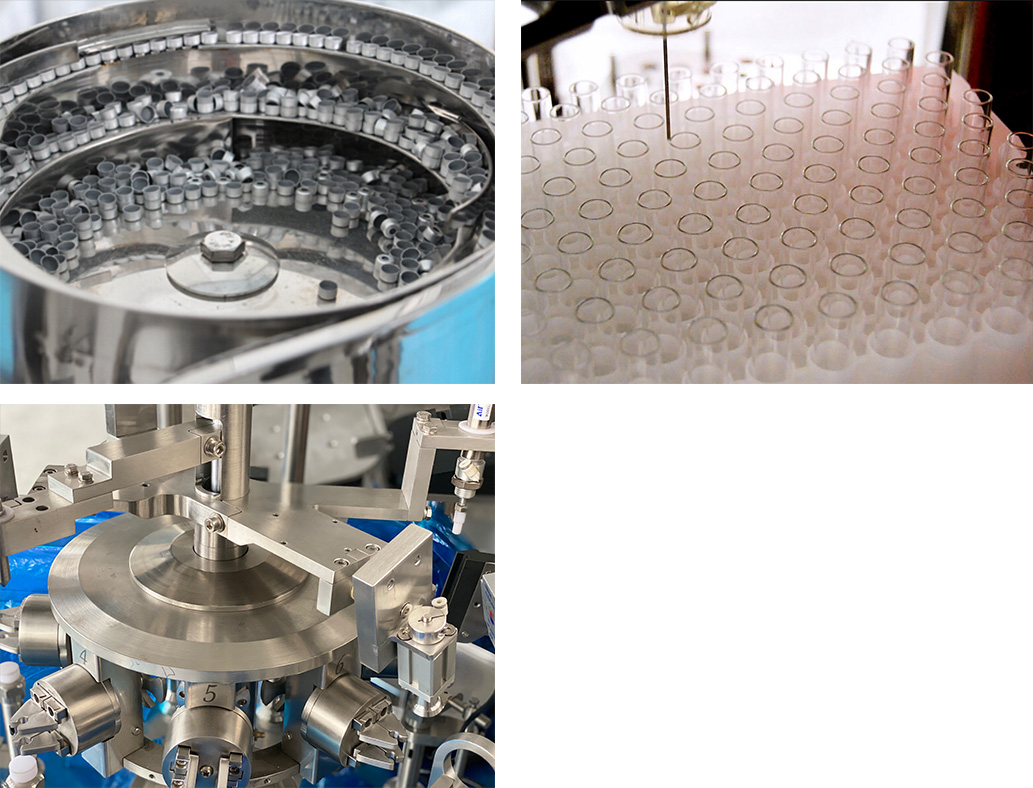 Our filling systems for pre-sterilized and bulk containers combine flexibility and precision: a wide range of technologies, including valve piston and peristaltic pump, mass-flow and time-pressure filling, make sure you can fill your products in a highly customized way. Tool-less format changes and filling stations with a variable number of filling heads increase the flexibility of your filling processes. Subsequent sealing is equally versatile, offering you a variety of methods such as gas burning or vacuum stopper insertion for tightly sealed containers. In-process control (IPC) further improves filling quality with constant checks of filling weight and stopper location.